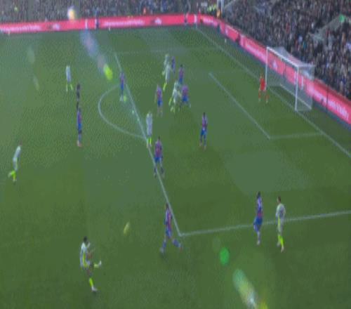 事实也的确如此,水晶宫开场之后不断创造出破门良机。比赛的第16分钟,沃顿直塞,皮诺单刀突入禁区右脚劲射击中横梁。