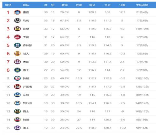 鹈鹕输球后13胜39负,继续排名西部第14。